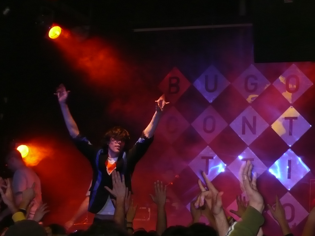 Il palco presenta un set essenziale, 2 Mac a testimoniare la spiccata matrice elettronica, e la tradizionale strumentazione. Il concerto, vera e propria presentazione del nuovo disco, si apre con “Nel giro giusto”, tirata il più possibile. Per due ore Bugo, con la sua nuova band, esegue quasi tutti i brani dell’ultimo album, alternandoli a quelli degli esordi. Una scaletta inedita con canzoni storiche come “Ggeell”, “Io mi rompo i coglioni”, “Casalingo” e “Amore mio infinito”, per l’occasione totalmente rivisitate e riarrangiate. Un sound elettronico che a volte fa rimpiangere in queste canzoni quel giro di chitarra distorta a sostegno di un testo esplosivo. Niente travestimenti o effetti speciali, solo 3 gemelli Rubens a supporto, Bugo con la sua frenesia coinvolge e diverte, si dimena su “Prisencolinensinainciusol” di Celentano, risale sulla sua navicella e va via.