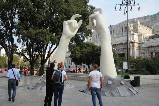 Enormi mani bianche. Sono spuntate a Londra, Varsavia, Stoccolma, Zurigo, Berlino, Milano (presso la Stazione Centrale), Mosca e Parigi. Si sa ancora poco a riguardo, quasi niente. Un video che ne racconta la realizzazione, un sito web thebighands.com che raccoglie le foto e i tweets stupiti della gente che se li trova davanti. Il mistero dovrebbe svelarsi presto dicono…