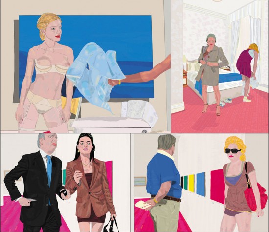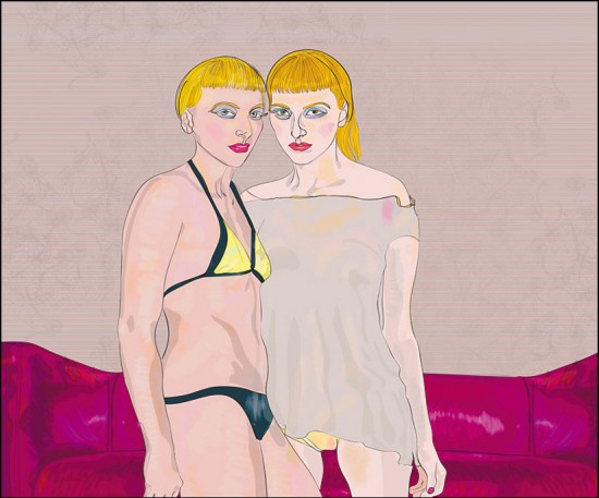 Quando ad Agosto mi è stato chiesto di preparare un lavoro per il “Fringe Festival” di Dublino, ho realizzato due progetti diversi, uno più vicino alla mia sensibilità, mentre col secondo ho cercato di interpretare meglio le intenzioni di chi mi aveva commissionato il lavoro, Absolut Vodka. Ho consegnato entrambi i lavori e quello che è stato approvato, è stato il secondo. In questo i colori sono più brillanti, le ragazze sono più sorridenti, forse più belle e non c’è più quel velo di leggera solitudine che avevo invece lasciato nel primo.