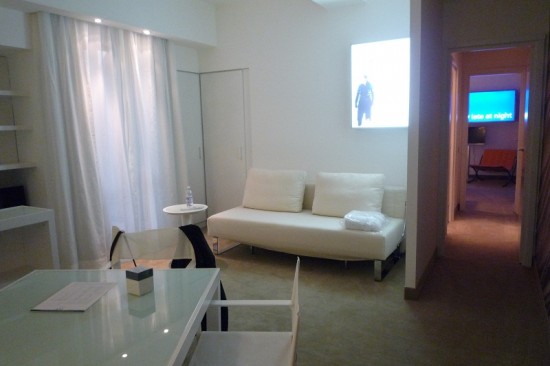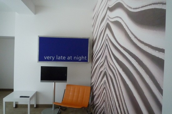 Pareti ed arredi sono stati tinteggiati di bianco per creare un contenitore quasi totalmente neutro, vivacizzato solo dalla posa, su una parete, di una carta da parati su disegno di Pericles Liatsos, realizzata da YO2 (Yo-yo designs). Presenti inoltre opere di Nico Dockx e Domenica Bucalo per gentile concessione della Galleria Neoncampobase.