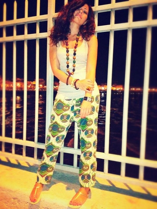 Il look “happy fashion” selezionato dalla nostra redazione è quello di Luigia. Semplice nella sua totalità ma ricercato, l’outfit è dato dalla combinazione del sandalo freedom dorato con un completo, canotta a costine color avorio e printed pants in crepe di seta a fantasia. Di giorno o di sera, è un vero e proprio passe-partout da indossare in qualsiasi momento con naturalezza sia in vacanza che in città. In linea con le ultimissime tendenze, Luigia ha saputo mettere in risalto in una location tipicamente estiva il modello freedom, abbinandolo ad un look fresco, vivace e chic.