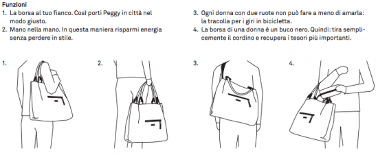 Una delle particolarità di PEGGY è la (mini) borsa nella borsa. Al momento del bisogno basta tirare su il cordino per recuperare in superficie la piccola PEGGY e le chiavi, il cellulare, o qualsiasi altro effetto personale che sia stato riposto nel piccolo contenitore. Ah, poi ovviamente la borsa è realizzata con gli indistruttibili teloni dei camion, ma questo già lo sapete…. Per farvi un’idea di cosa può contenere la nuova Peggy guardate il simpatico video qua sotto, ed iniziate a pensare a come la riempireste voi.