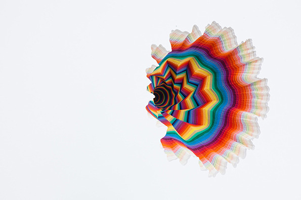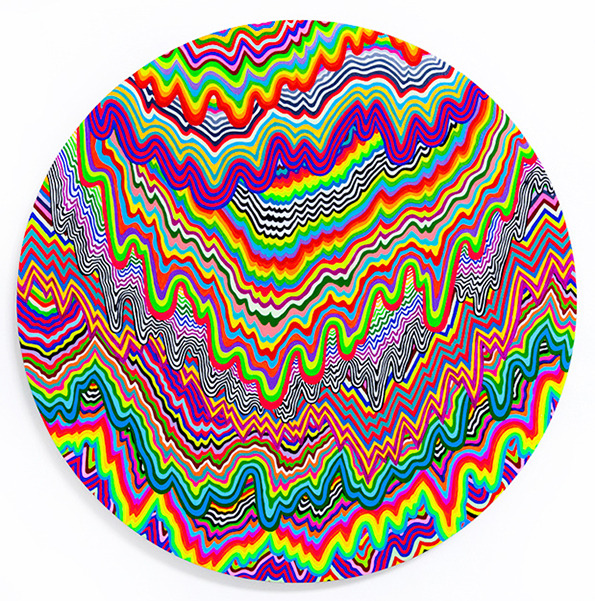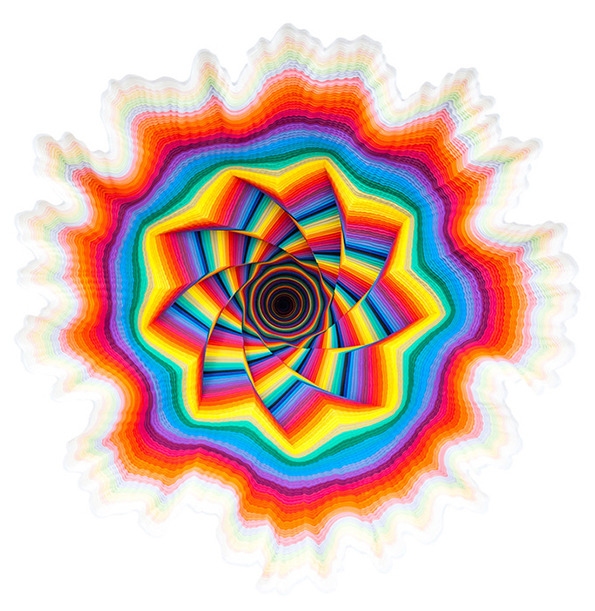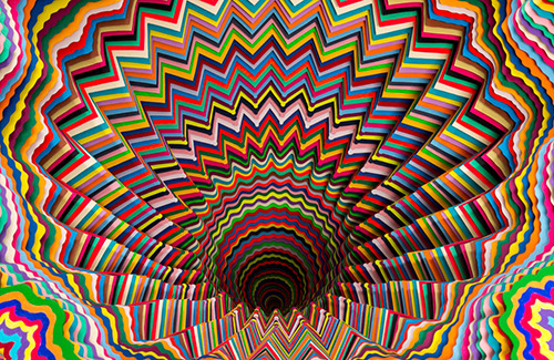 Vortici, portali, convessità e concavità, psichedelia. Queste sono alcune parole chiave che possono descrivere le opere di Jen Starks, una giovane artista di Miami che coi colori ci sa davvero fare. I suoi lavori sono molto complessi, psichedelici, senza però risultare complicati, invece davvero intriganti e piacevoli. Durante la sua ultima mostra a Los Angeles, “To The Power Of”, che richiama sia il potere della matematica che, più implicitamente, quello dell’infatuazione religiosa, i suoi lavori hanno dato sfoggio della grande facilità con la quale l’artista esplora le sue paure e preoccupazioni.