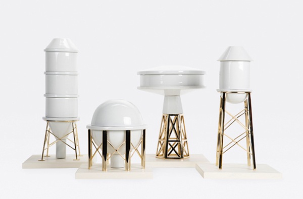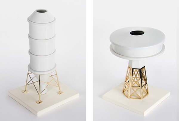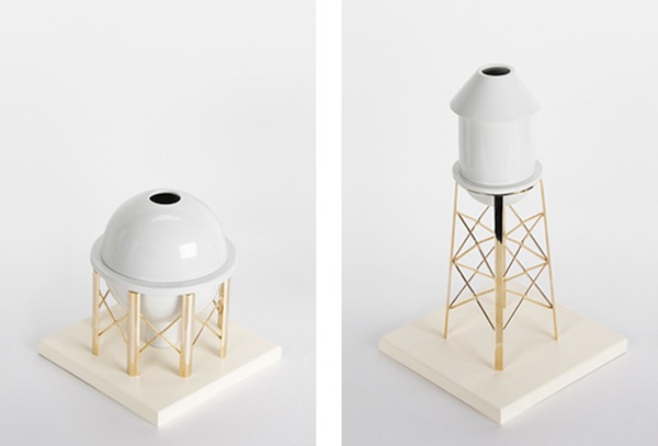 This porcelain vases with metal bases collection is a tribute to the industrial archeology, highlighting the need for preservation of these buildings. Designed by Gentle Giants.