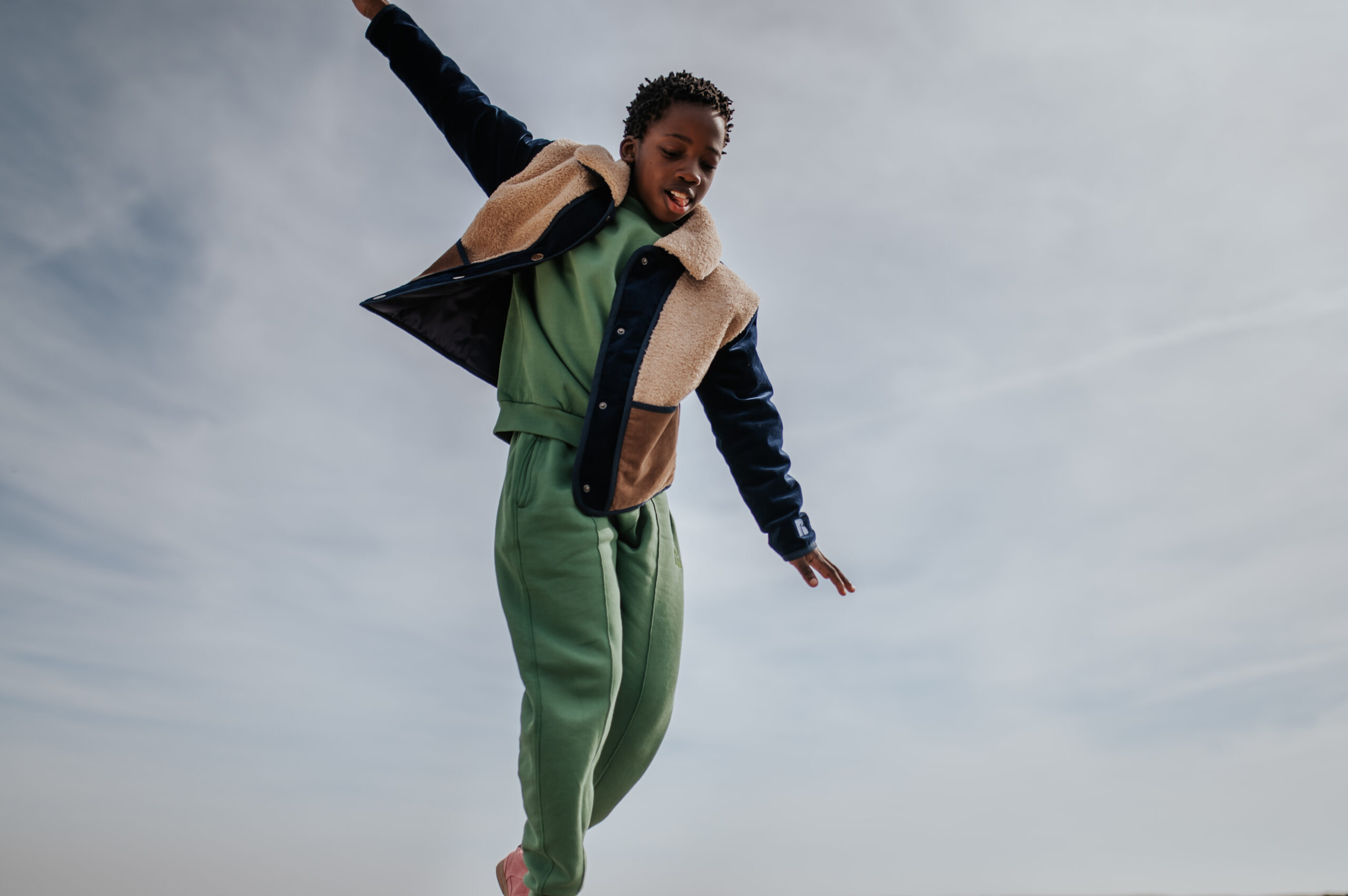 La palette cromatica della collezione è calda e profonda, con tocchi luminosi che spaziano dal berry jam al blu intenso, fino a colori più delicati come il rosso fiesta washed e il lilla. Questo equilibrio tra tonalità accese e sobrie rende la collezione ideale per affrontare i mesi invernali con stile, senza rinunciare al comfort. Tra i pezzi chiave troviamo i classici crewneck sweaters e joggers, insieme a capi più audaci come la giacca “nutty” e l’abito con colletto decorativo, tutti caratterizzati da un taglio leggermente oversize, amato dai bambini per la sua semplicità e comodità.