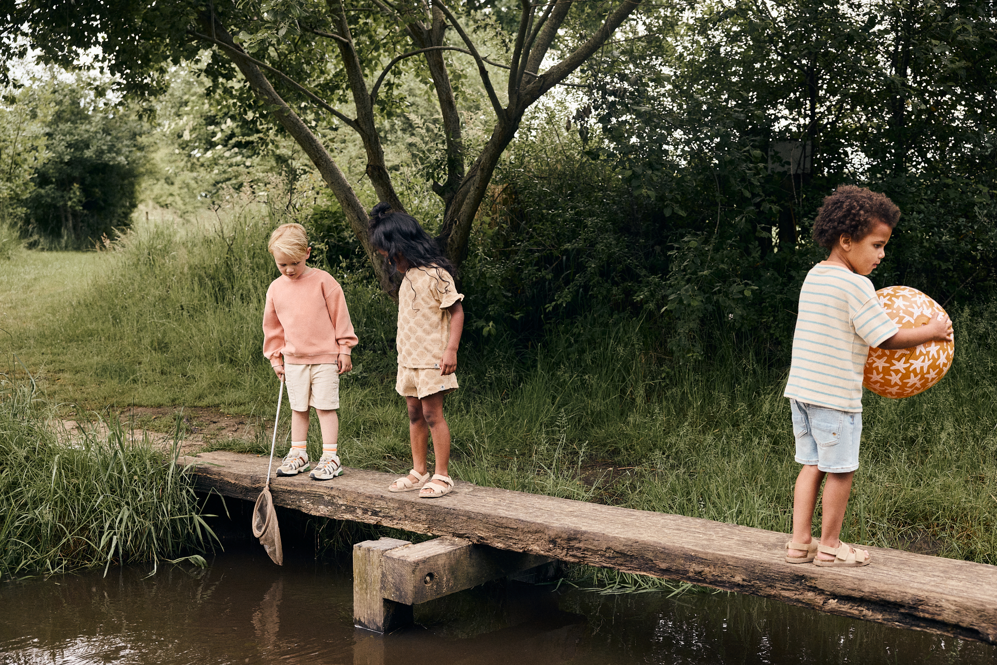 La nuova proposta SS26 si sviluppa come un viaggio nella natura, tra campi di fiori selvatici, giornate luminose e avventure all’aria aperta. L’idea è quella di creare capi che accompagnino i bambini durante tutta la giornata, dai giochi sotto il sole fino alle esplorazioni del tardo pomeriggio, mantenendo sempre comfort e praticità al centro del design.